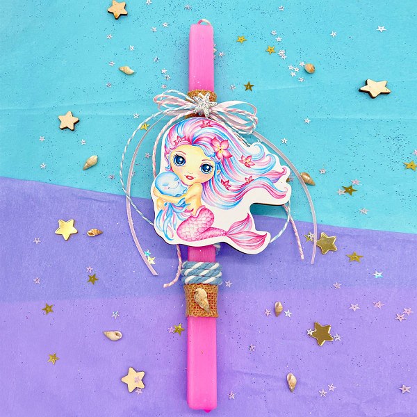 Χειροποίητη Πασχαλινή Λαμπάδα Γοργόνα, με υπέροχα υλικά και κορδέλες, που θα κλέψει τις εντυπώσεις και θα γεμίσει με χαμόγελα νονούς και παιδιά!