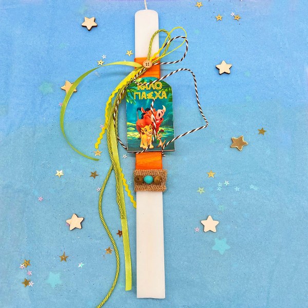 Λαμπάδα Βασιλιάς των Λιονταριών, με υπέροχα υλικά και κορδέλες, που θα κλέψει τις εντυπώσεις και θα γεμίσει με χαμόγελα νονούς και παιδιά!