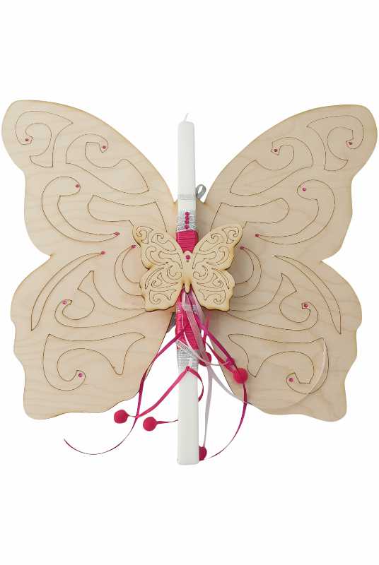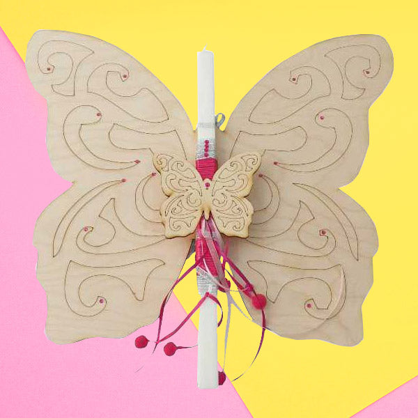 Χειροποίητη Πασχαλινή Λαμπάδα Πεταλούδα, με ξύλινο σχηματικό κάδρο για το δωμάτιο!