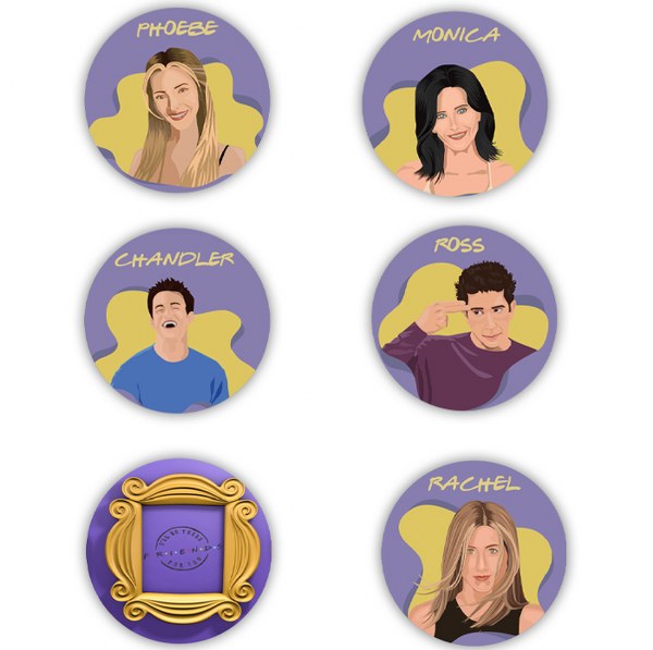 Κονκάρδες με την αγαπημένη παρέα από τα Φιλαράκια! Φόρεσε τες με τους φίλους σου ή διακόσμησε τσάντες και ρούχα!