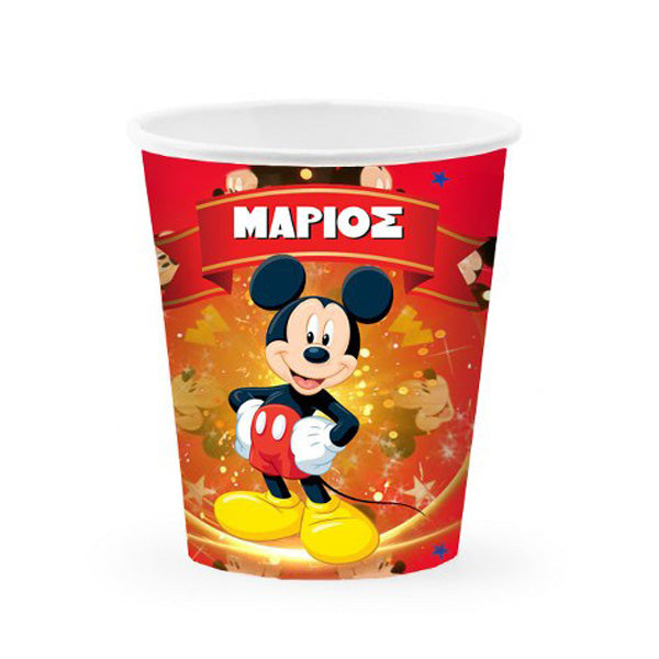 Ποτηράκια με το όνομα του μικρού σας με θέμα το Mickey Mouse, για να κεράσετε τους καλεσμένους σας στο τραπέζι του πάρτυ!