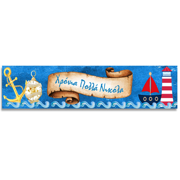 Runner με θέμα Ναυτικό και το μήνυμα της επιλογής σας! Μπορεί να χρησιμοποιηθεί για τη διακόσμηση του τραπεζιού ή ως μπάνερ στην πόρτα ή τον τοίχο.