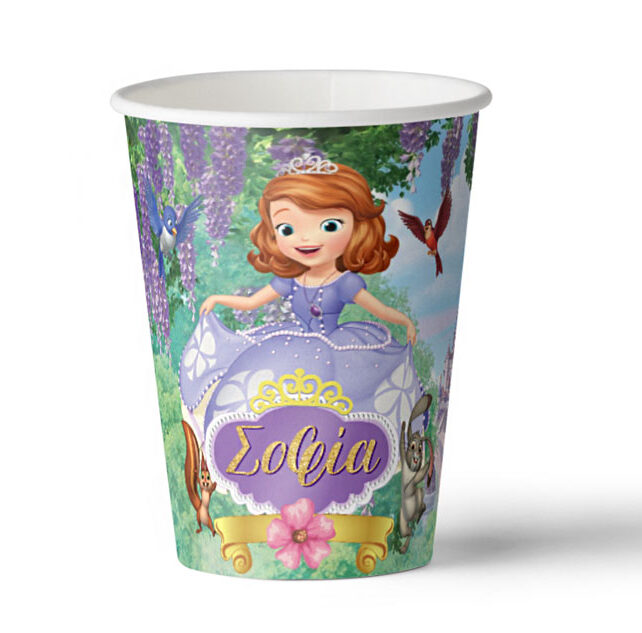 Προσωποποιημένα ποτηράκια με την Πριγκίπισσα Σοφία, για το τραπέζι του θεματικού πάρτυ!