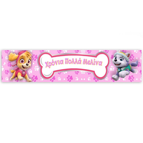 Runner Paw Patrol με τα κουταβάκια Skye & Everest και το μήνυμα της επιλογής σας! Μπορεί να χρησιμοποιηθεί ως runner για τη διακόσμηση του τραπεζιού ή ως μπάνερ στην πόρτα ή τον τοίχο.