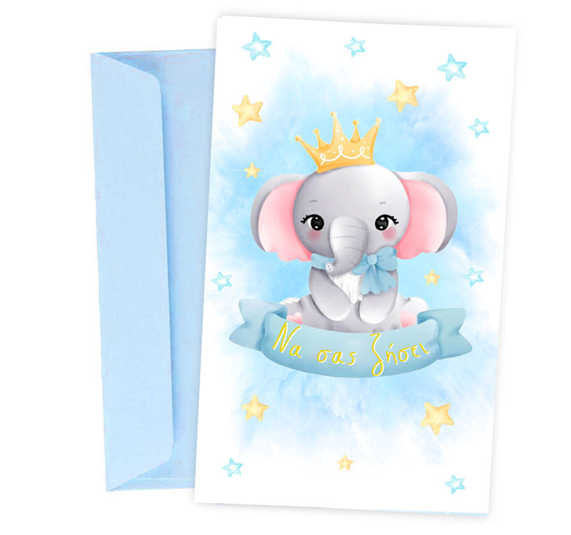 Ευχετήρια Κάρτα με χαριτωμένο ελεφαντάκι, για γέννηση ή βάπτιση. Γράψτε τις πιο θερμές ευχές σας!