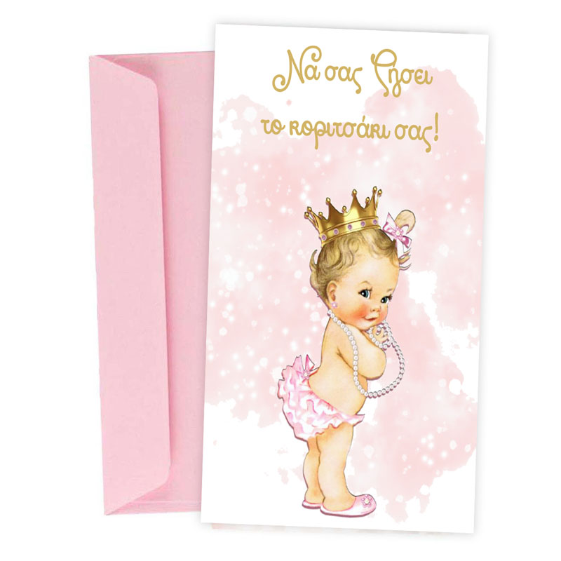 Ευχετήρια κάρτα με χαριτωμένο κοριτσάκι. Γράψτε τις πιο θερμές ευχές σας!