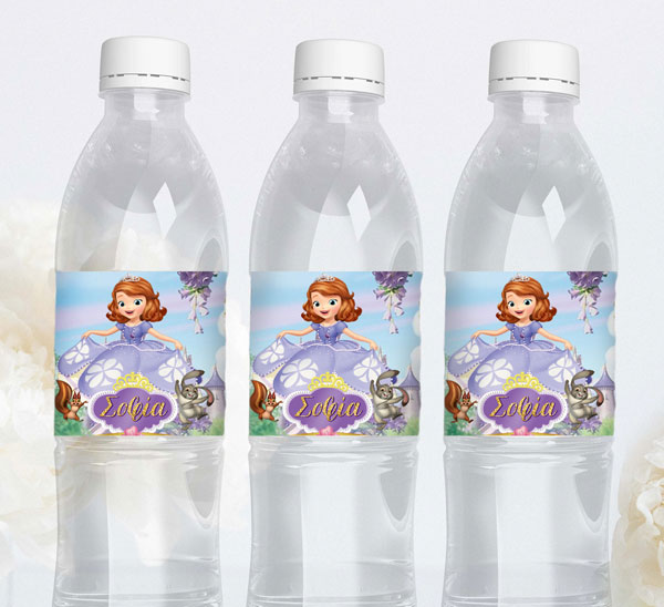 Οι καλεσμένοι δεν γίνεται να έχουν ένα κοινό μπουκάλι νερού! Μεταμορφώστε τα με ετικέτες σε θέμα Πριγκίπισσα Σοφία, που μπορούν να αναγράφουν το όνομα του παιδιού του.