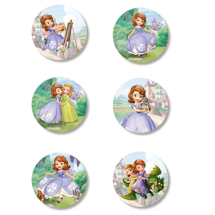 Κονκάρδες με θέμα την Πριγκίπισσα Σοφία, για να φορούν οι καλεσμένες του πάρτυ ή για να διακοσμήσετε τα αγαπημένα σας αντικείμενα με αυτές!
