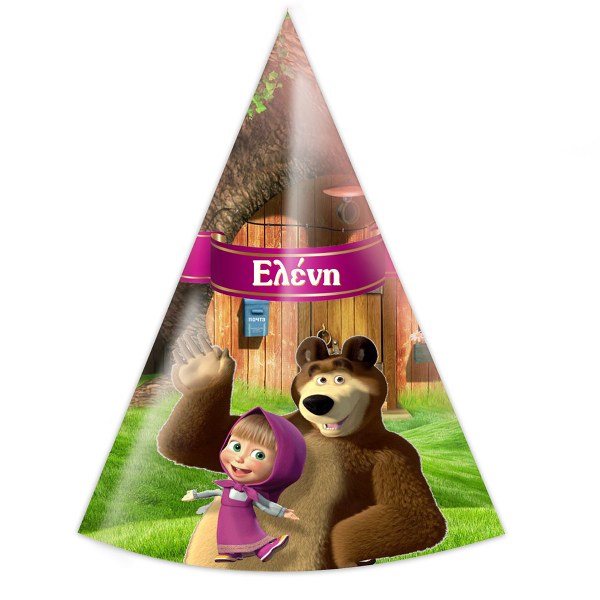 Μοιράστε στους καλεσμένους του πάρτυ σας, καπέλα με θέμα Μάσα και Αρκούδος και βάλτε τους σε γιορτινή διάθεση!