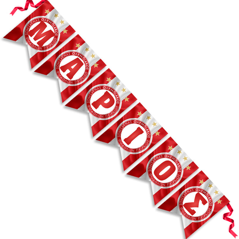 Σημαιάκια με όνομα και θέμα τον Ολυμπιακό, για να διακοσμήσετε το χώρο του πάρτυ ή το παιδικό δωμάτιο!