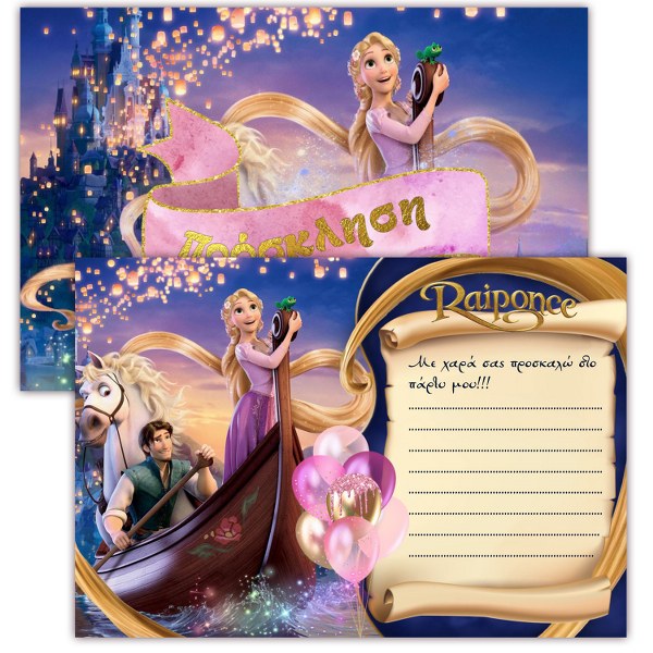 Προσκλήσεις για το πάρτυ γενεθλίων με θέμα την πριγκίπισσα Ραπουνζέλ!