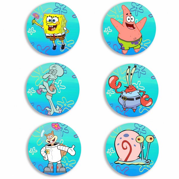 Κονκάρδες με τον Μπόμπ Σφουγγαράκη και την παρέα του, για να φορούν οι καλεσμένοι του πάρτυ ή για να διακοσμήσετε τα αγαπημένα σας αντικείμενα με αυτές!