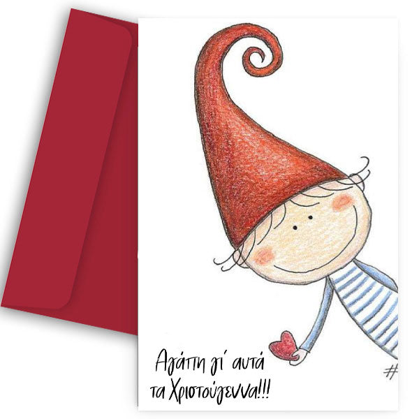 Χριστουγεννιάτικη Κάρτα γλυκό ξωτικό, για να ευχηθείτε στα αγαπημένα σας πρόσωπα αγάπη γι'αυτά τα ιδιαίτερα Χριστούγεννα.