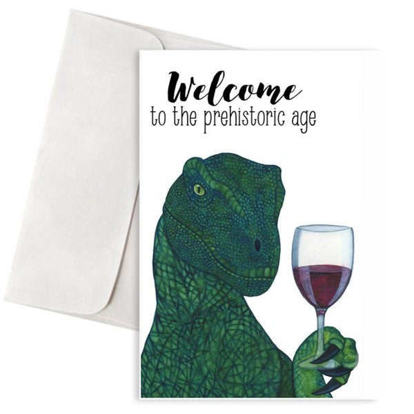 Κάρτα γενεθλίων με Δεινόσαυρο και μήνυμα "Welcome to the prehistoric age", για να ευχηθείτε στα αγαπημένα σας άτομα Χρόνια Πολλά με έξτρα δόση χιούμορ!