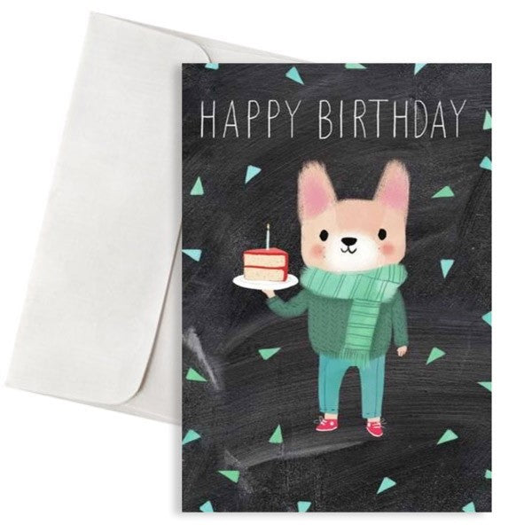 Κάρτα γενεθλίων με σχέδιο σκυλάκι και μήνυμα "Ηappy Birthday", για να ευχηθείτε στα αγαπημένα σας άτομα Χρόνια Πολλά !