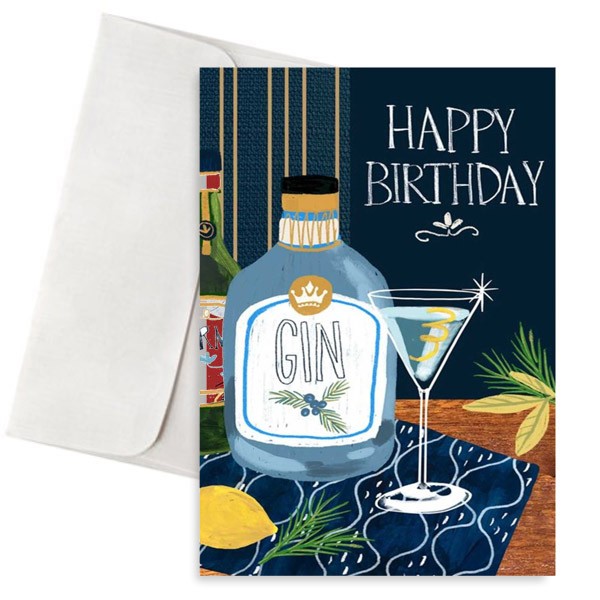 Κάρτα γενεθλίων με σχέδιο Gin μπουκάλι, για να ευχηθείτε στα αγαπημένα σας άτομα Χρόνια Πολλά !