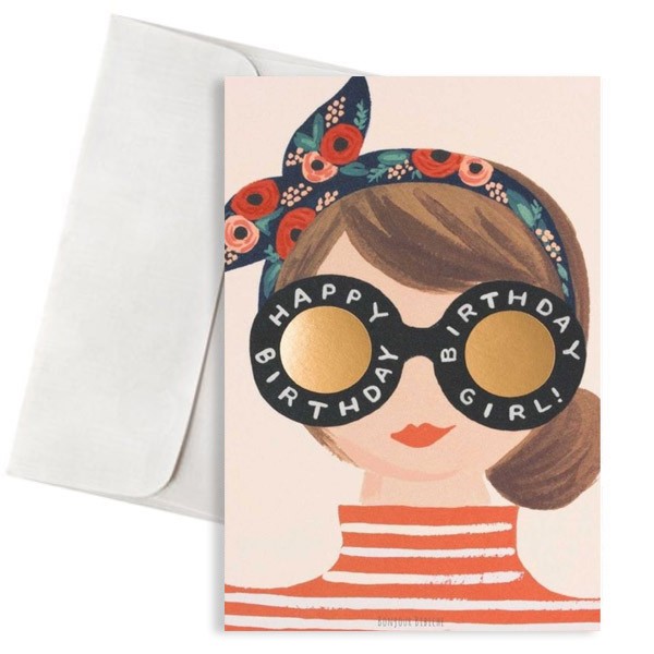 Κάρτα γενεθλίων με σχέδιο μοδάτο κορίτσι με γυαλιά, για να ευχηθείτε στα αγαπημένα σας άτομα Χρόνια Πολλά !