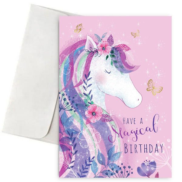 Κάρτα γενεθλίων με σχέδιο μαγικό Μονόκερο, για να ευχηθείτε στα αγαπημένα σας άτομα Χρόνια Πολλά !
