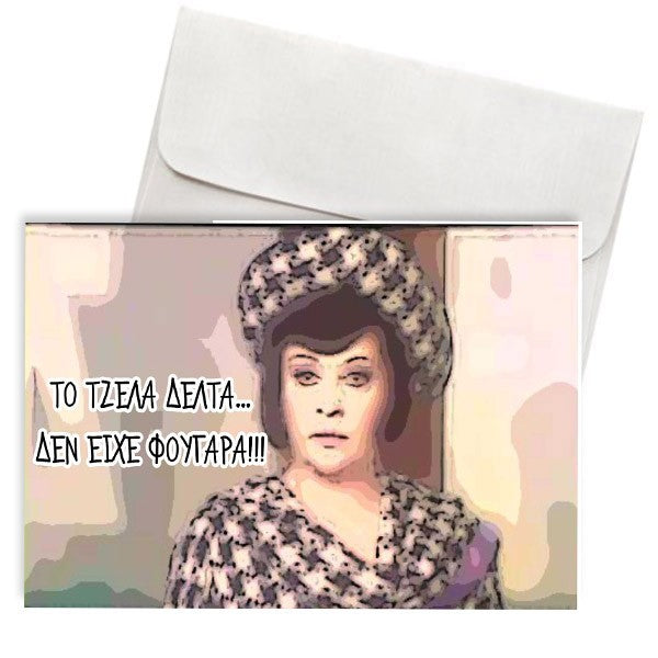 Χιουμοριστική Κάρτα με την Τζέλα Δελαφράγκα και τη ξεκαρδιστική ατάκα "Το Τζέλα Δέλτα δεν είχε φουγάρα"