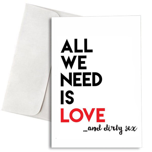 Κάρτα Αγάπης με σέξυ σχέδιο “All we need is Love and Dirty Sex”, για να χαρίσετε στο αγαπημένο σας πρόσωπο και να του κάνετε μια.. διαφορετική έκπληξη!