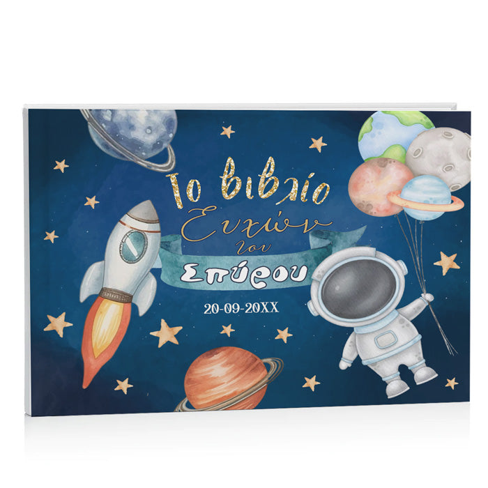 Εντυπωσιακό, χειροποίητο Βιβλίο Ευχών με θέμα Αστροναύτης για τη Βάπτιση του μωρού σας! Κρατήστε για πάντα τις ευχές των καλεσμένων σας σε ένα όμορφο ευχολόγιο.
