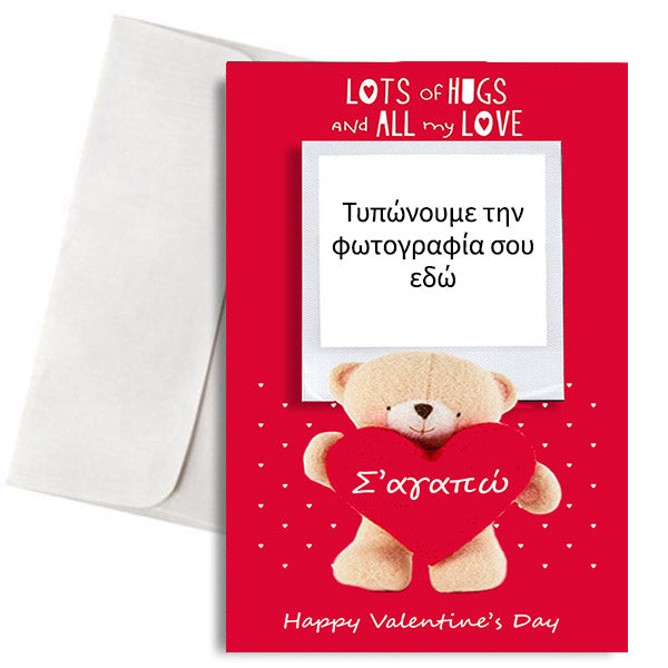 Ευχητήρια Κάρτα Βαλεντίνου με τυπωμένη επάνω τη φωτογραφία σας και μήνυμα Σ' αγαπώ, για να χαρίσετε σ' αυτόν που αγαπάτε!
