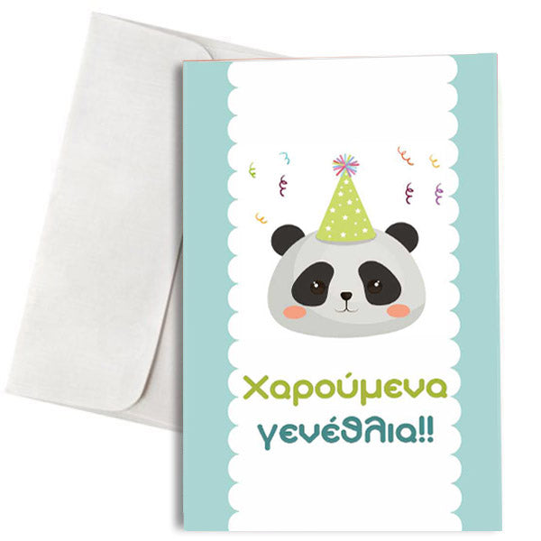 Κάρτα Γενεθλίων με γλυκό αρκουδάκι Panda για να ευχηθείτε Χαρούμενα Γενέθλια με γλυκό τρόπο.