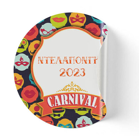 Στρογγυλά αποκριάτικα αυτοκόλλητα Ντελαπόνγκο, για να διακοσμήσετε τα αγαπημένα σας αντικείμενα με αυτά!