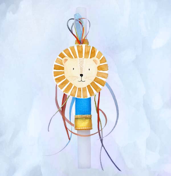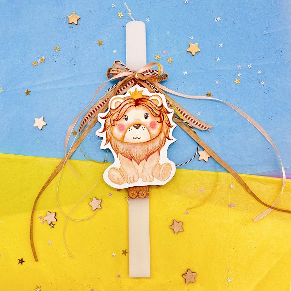 Χειροποίητη Πασχαλινή λαμπάδα χαριτωμένο Λιονταράκι με υπέροχα υλικά και κορδέλες, που θα γεμίσει χαμόγελο νονούς και παιδιά!