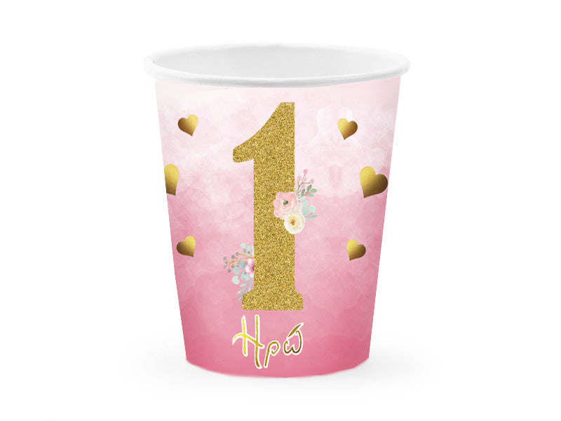 Ποτήρια πάρτυ "1st Birthday" ροζ χρυσό (8 τεμ)