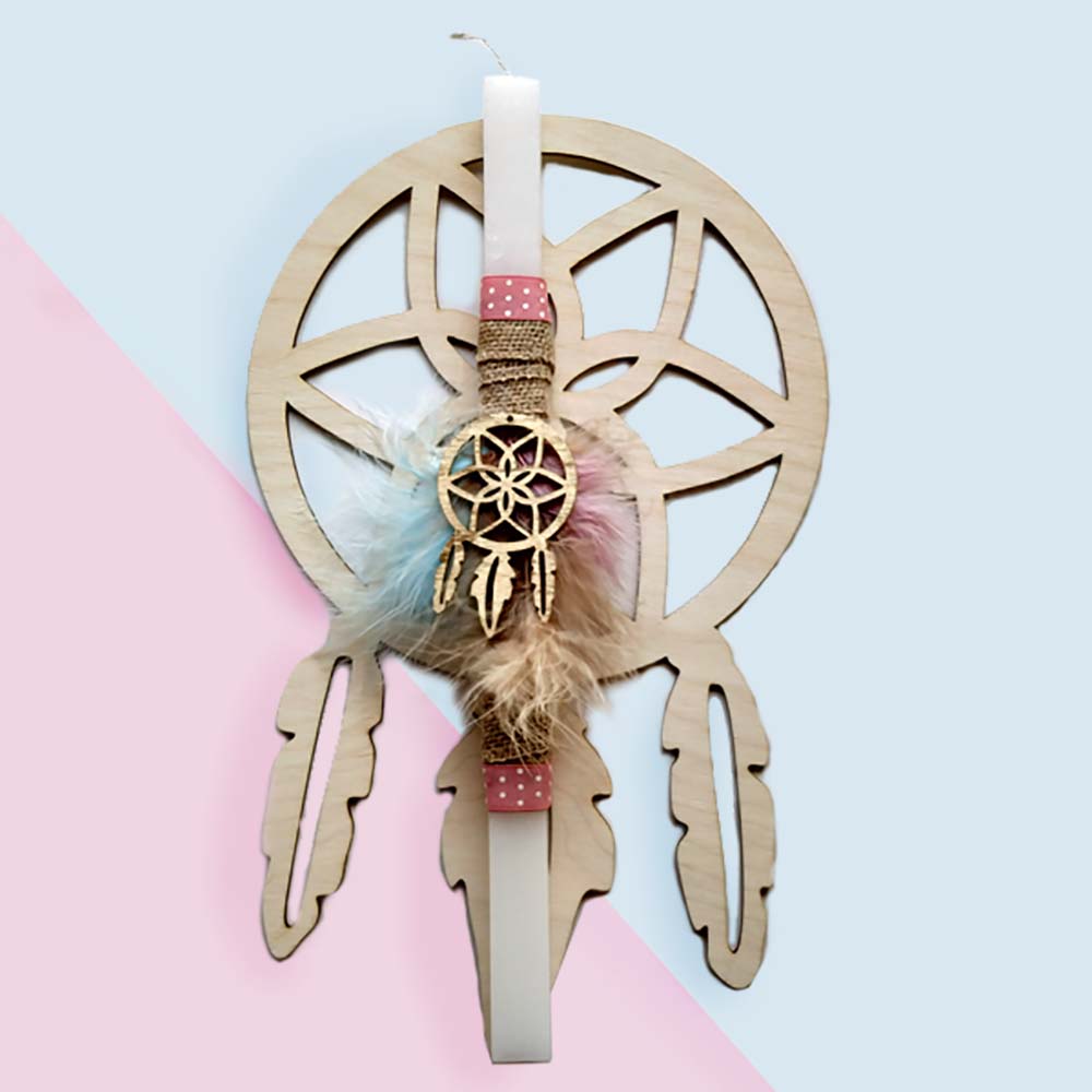 Εντυπωσιακή πασχαλινή λαμπάδα Ονειροπαγίδα, μαζί με ξύλινο κάδρο που θα κοσμεί το δωμάτιο και θα διώχνει τα κακά όνειρα!