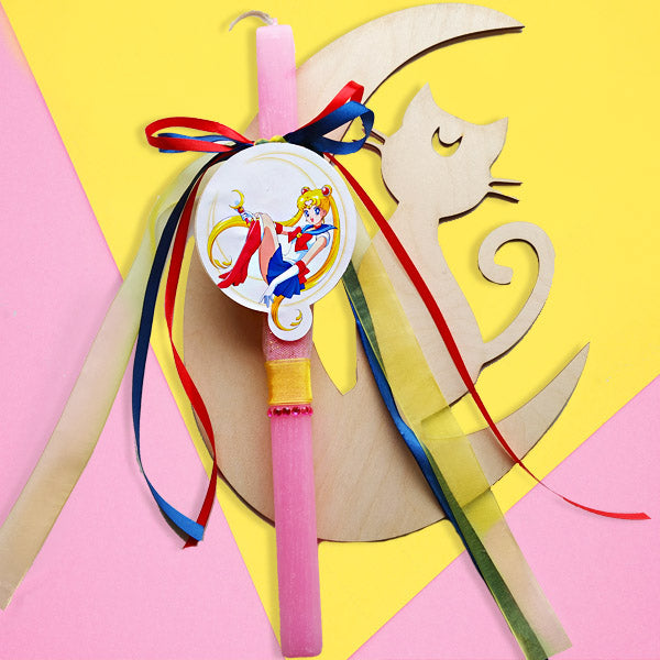 Εντυπωσιακή πασχαλινή λαμπάδα με την αγαπημένη Sailor Moon και μαζί ξύλινο κάδρο για τη διακόσμηση του δωμάτιου!