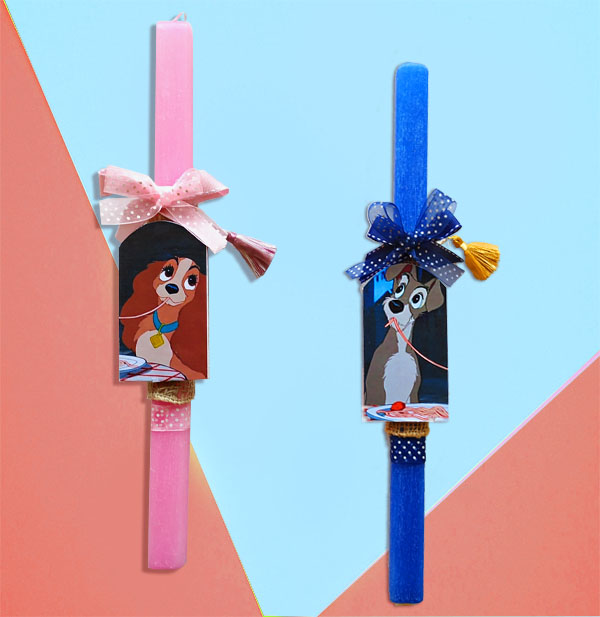Λαμπάδα για να χαρίσετε στο ταίρι σας, με τα σκυλάκια Λαίδη και Αλήτης!