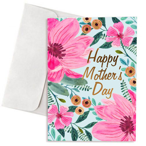 Κάρτα για την γιορτή της μητέρας Happy Mother's Day με ροζ λουλούδια, για να δώσετε στη μαμά σας & να της ευχηθείτε μαζί με το δώρο ή τα μπαλόνια!