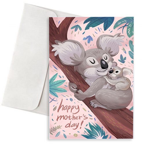 Ευχετήρια κάρτα για τη μαμά με χαριτωμένα αρκουδάκια Κοάλα και μήνυμα Happy Mother's Day!