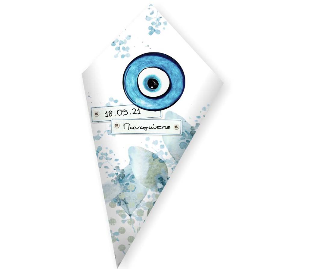 Στολίστε το μπουφέ ή το τραπέζι της βάπτισης, με προσωποποιημένα χωνάκια ζαχαρωτών με θέμα Ματάκι για να κεραστούν οι καλεσμένοι σας!