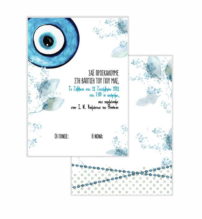 Το προσκλητήριο είναι κάρτα, από χοντρό χαρτόνι με τυπωμένο κείμενο της επιλογής σας
