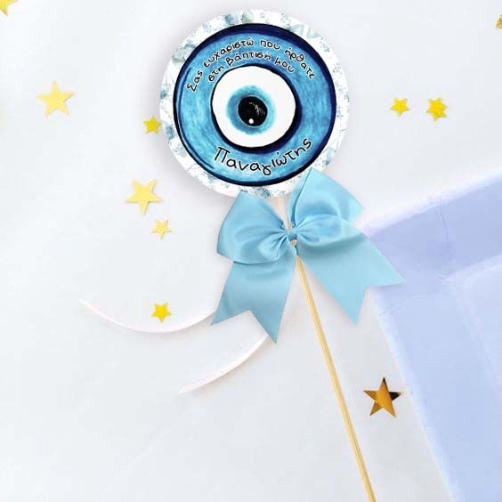 Στολίστε το μπουφέ της βάπτισης με διακοσμητικά στικάκια που φέρουν το μήνυμα που θέλετε με θέμα το Ματάκι!