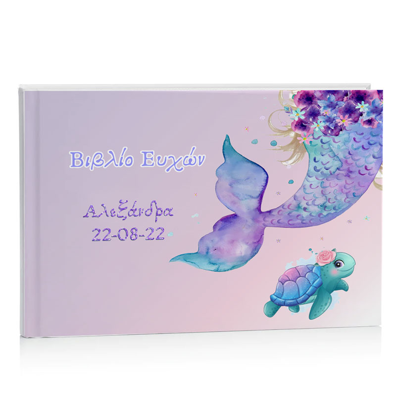 Εντυπωσιακό, χειροποίητο Βιβλίο Ευχών με θέμα ουρά Γοργόνας τη Βάπτιση του μωρού σας! Κρατήστε για πάντα τις ευχές των καλεσμένων σας σε ένα όμορφο ευχολόγιο.
