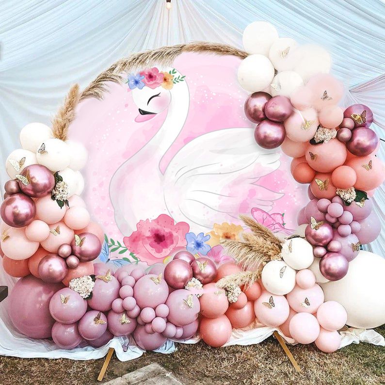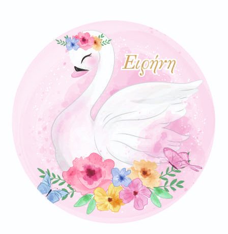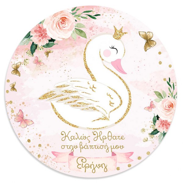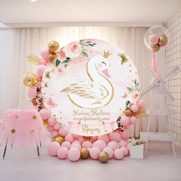 Στρογγυλή αφίσα από μουσαμά με θέμα Κύκνο, για να διακοσμήσετε το χώρο της βάπτισης του μωρού σας!