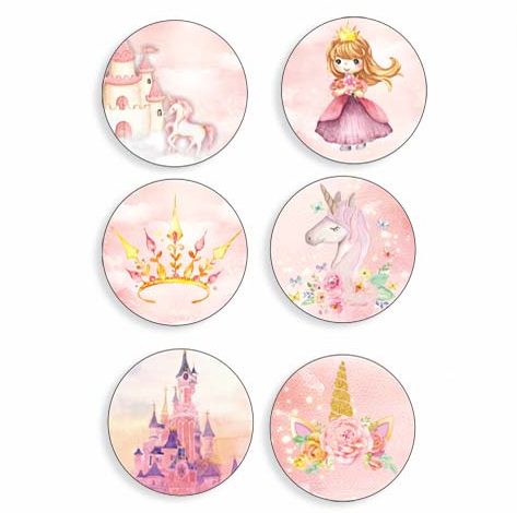 Κονκάρδες με θέμα Πριγκίπισσα & Μονόκερος. Ιδανική για μπομπονιέρα ή για δωράκι στους καλεσμένους.