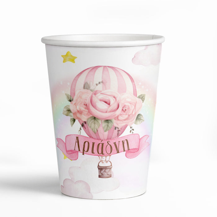 Ποτηράκια με το όνομα της μικρής σας και θέμα το Αερόστατο, για να κεράσετε τους καλεσμένους σας στο τραπέζι του πάρτυ ή της βάπτισης!