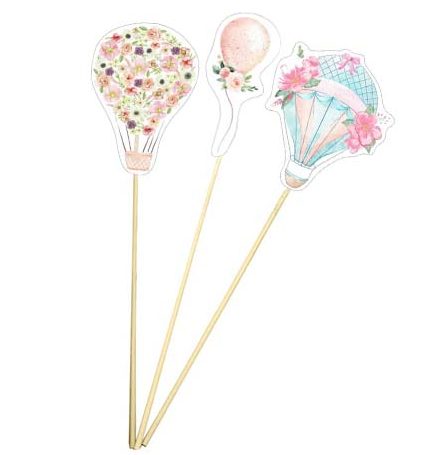 Στολίστε το μπουφέ της βάπτισης με διακοσμητικά στικάκια που φέρουν το μήνυμα που θέλετε με θέμα Φλοράλ Αερόστατο.