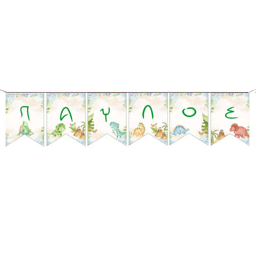 Διακοσμητικά σημαιάκια με το όνομα του μωρού σας και θέμα γλυκά Δεινοσαυράκια!