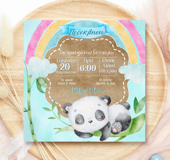 Προσκαλέστε τα αγαπημένα σας άτομα στη βάπτιση του μωρού σας με προσκλητήριο σε θέμα αρκουδάκι Panda!