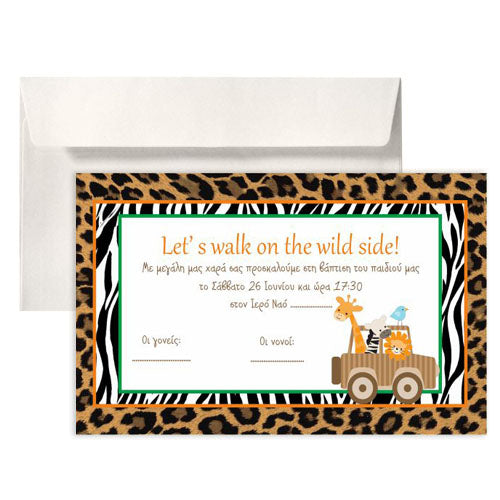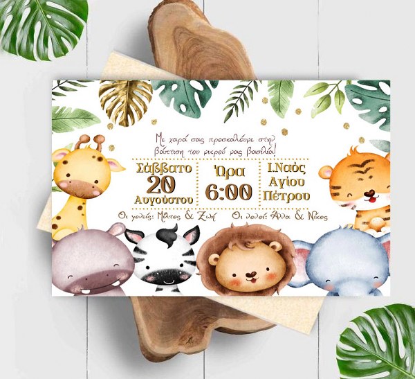 Προσκαλέστε τα αγαπημένα σας άτομα στη βάπτιση του μωρού σας με προσκλητήριο σε θέμα Σαφάρι - Ζώα της Ζούγκλας!