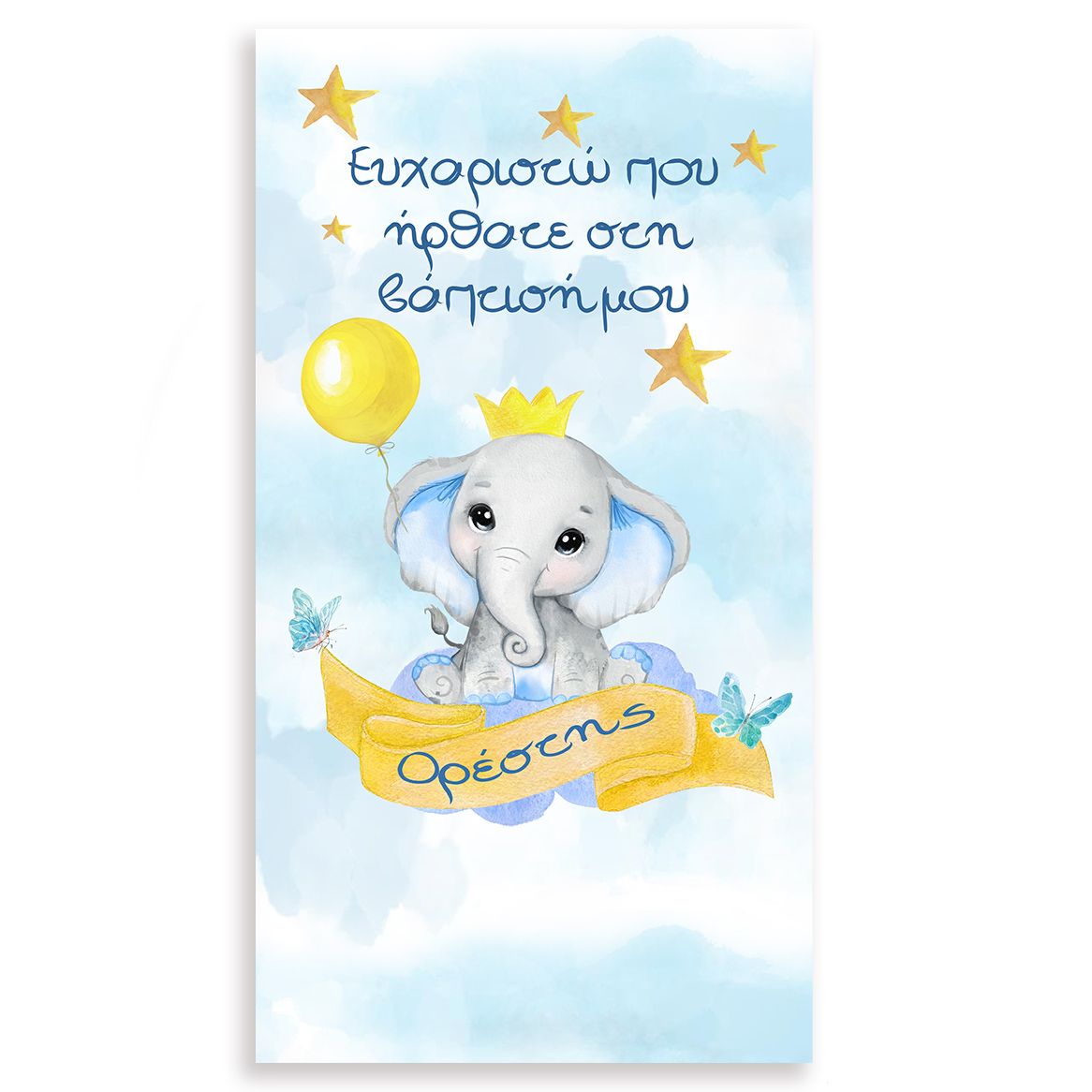 Μεγάλη αφίσα για να διακοσμήσετε το χώρο του πάρτυ ή της βάπτισης, με θέμα το Ελεφαντάκι και εκτυπωμένο το μήνυμα που θέλετε!