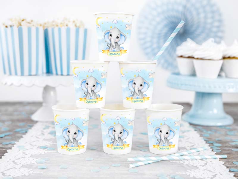 Προσωποποιημένα ποτηράκια με θέμα το Ελεφαντάκι, για να κεράσετε τους καλεσμένους σας στο τραπέζι του πάρτυ ή της βάπτισης!