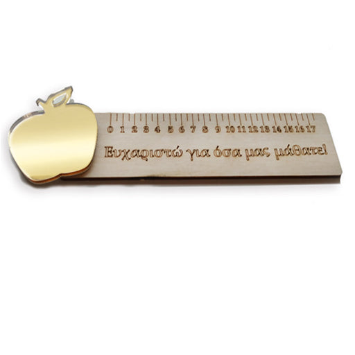 Ξύλινος Χάρακας με χρυσό Μήλο "Ευχαριστώ"