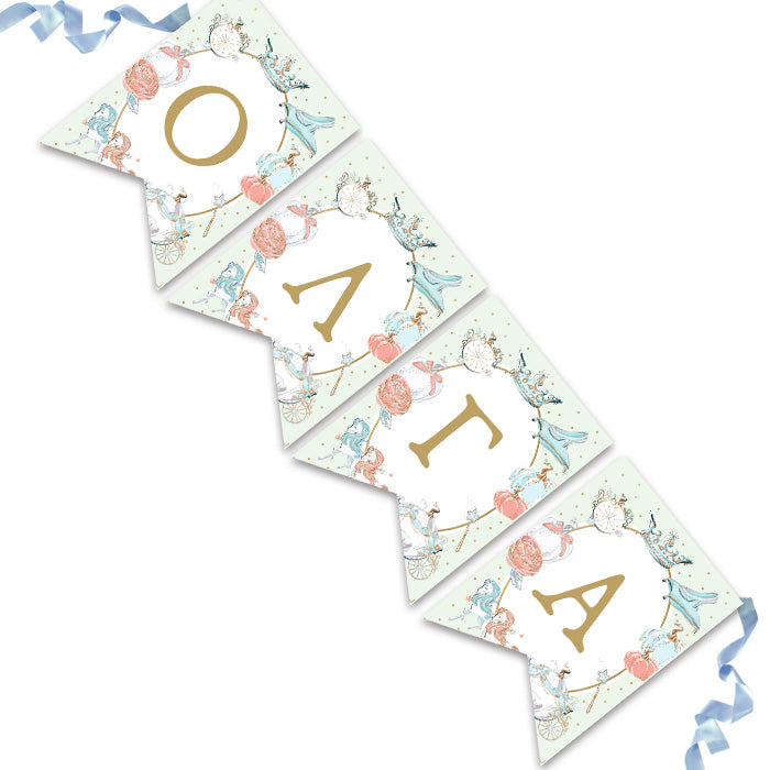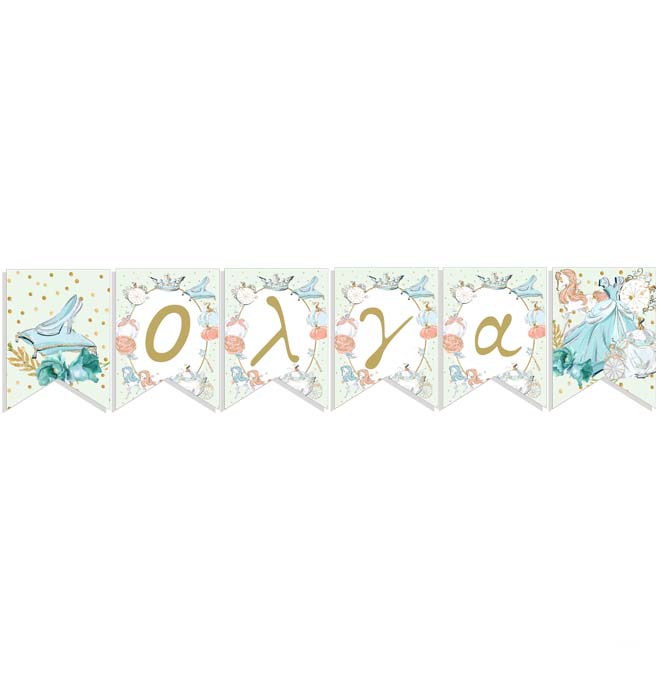 Διακοσμητικά σημαιάκια με το όνομα του μωρού σας και θέμα τη Σταχτοπούτα.